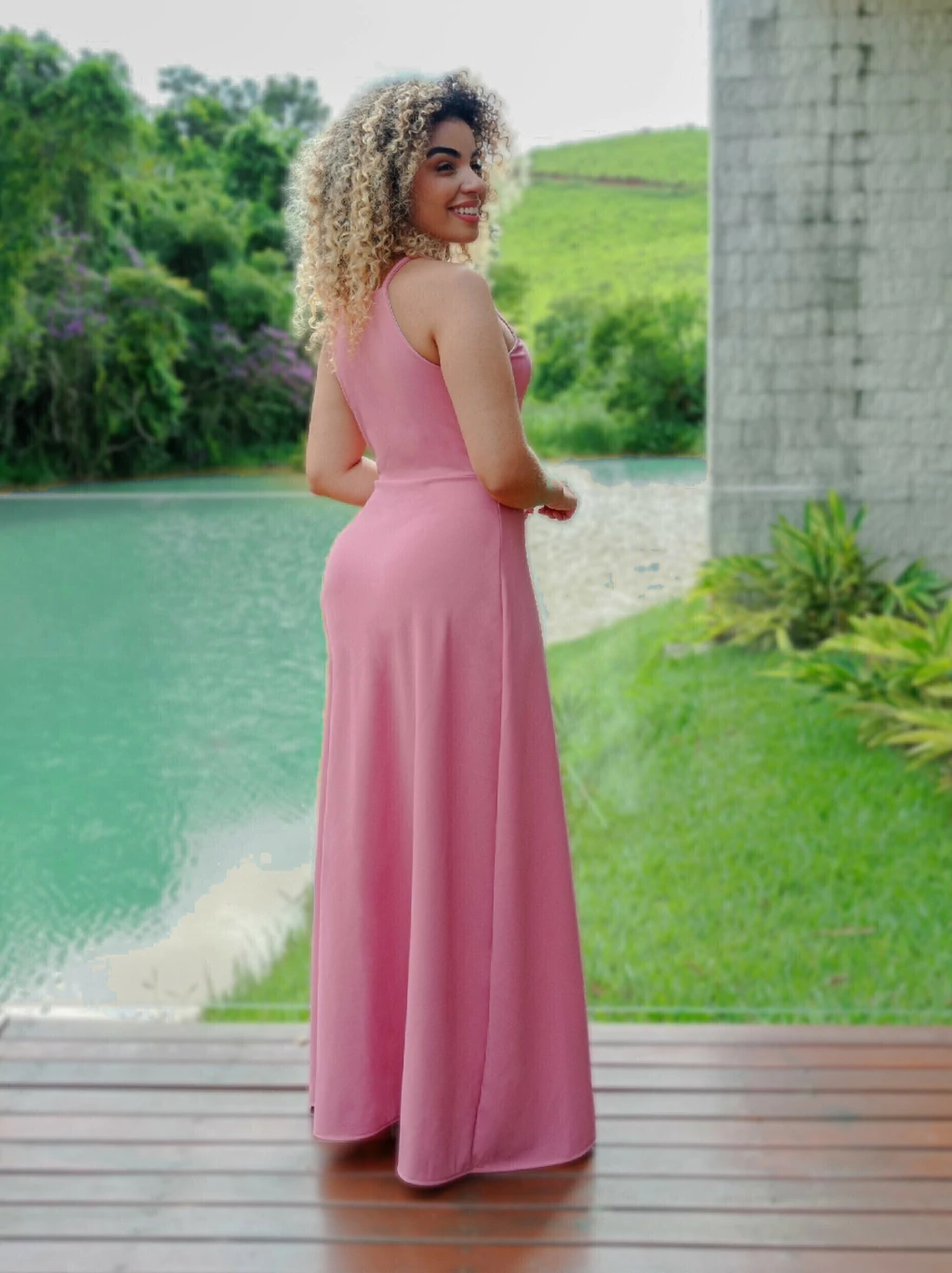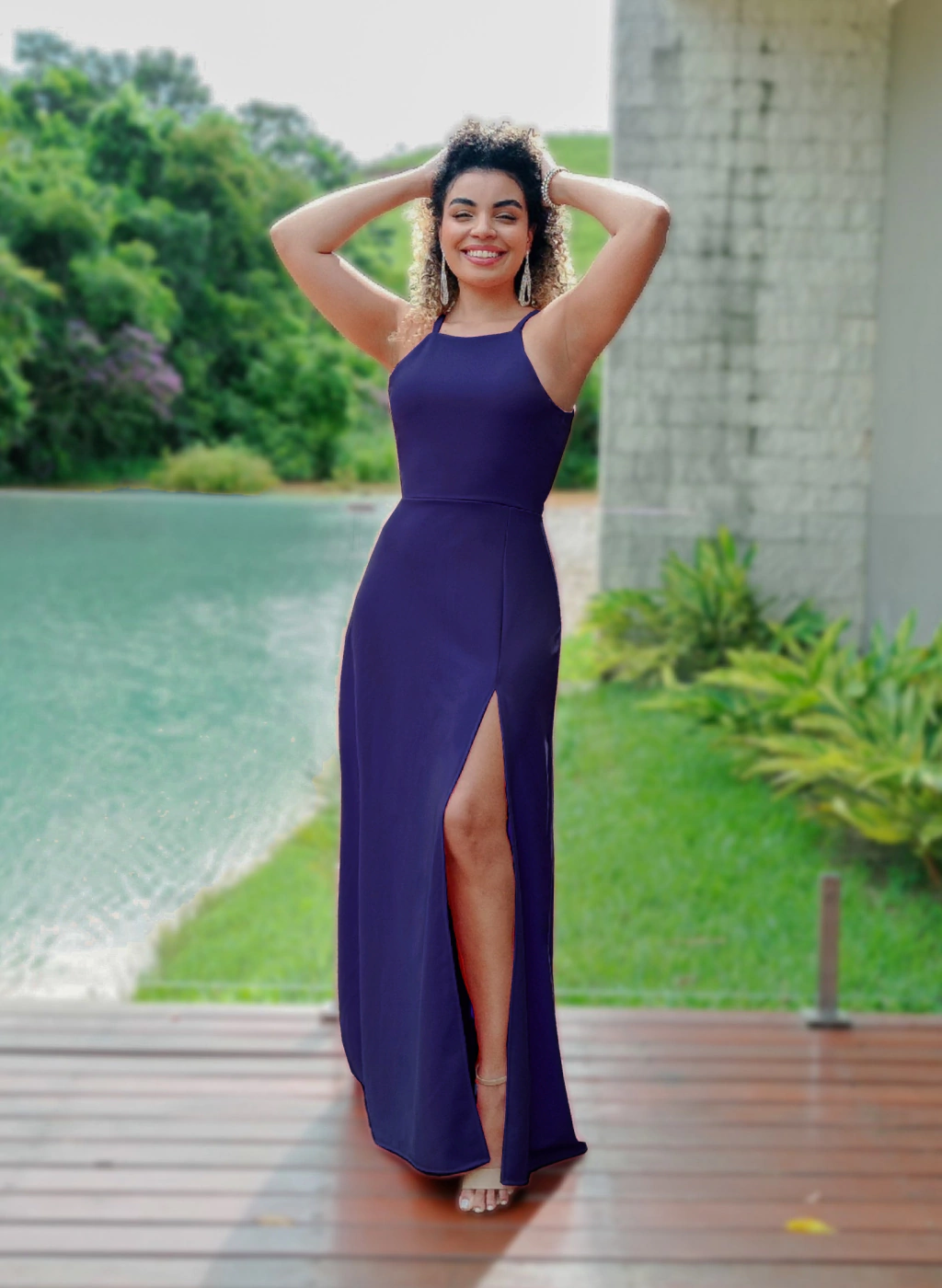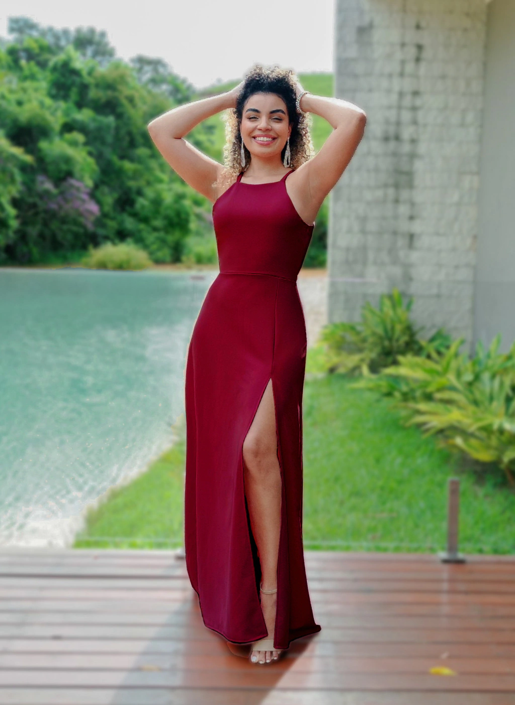 Fenda: A fenda na saia não apenas adiciona um elemento de sensualidade, mas também permite movimentos graciosos, garantindo um visual marcante.