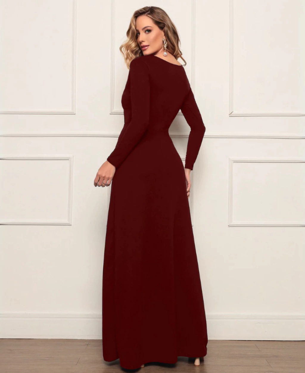 Este vestido longo é a escolha perfeita para quem busca uma combinação de estilo e conforto. Com um caimento impecável, ele destaca suas curvas de forma sutil, enquanto as mangas longas adicionam um toque de elegância atemporal. A fenda ousada proporciona movimento e uma pitada de sensualidade, tornando este vestido ideal para ocasiões especiais, onde você deseja impressionar. Seja em um evento formal ou uma celebração mais íntima, este vestido é sinônimo de sofisticação e classe.