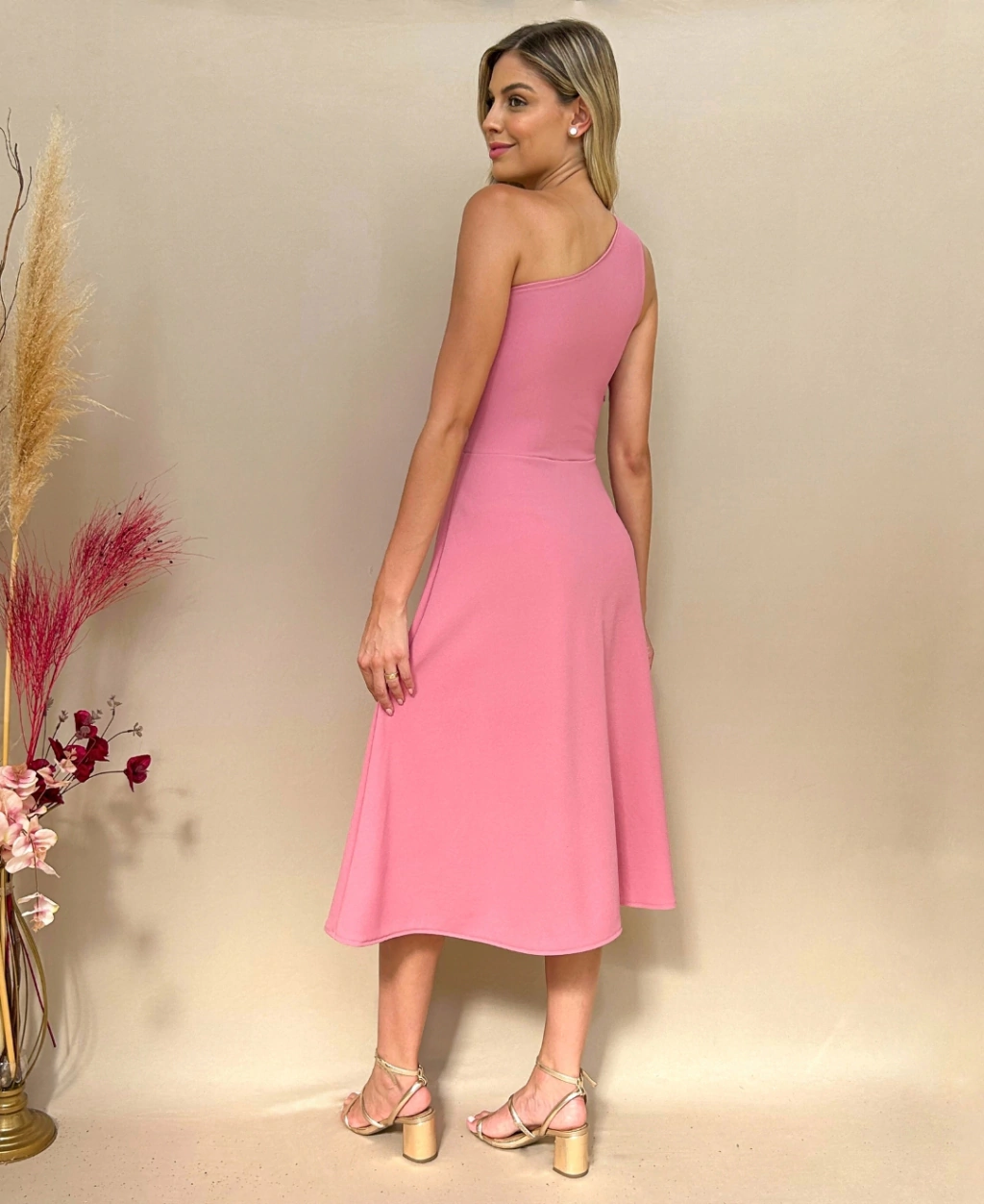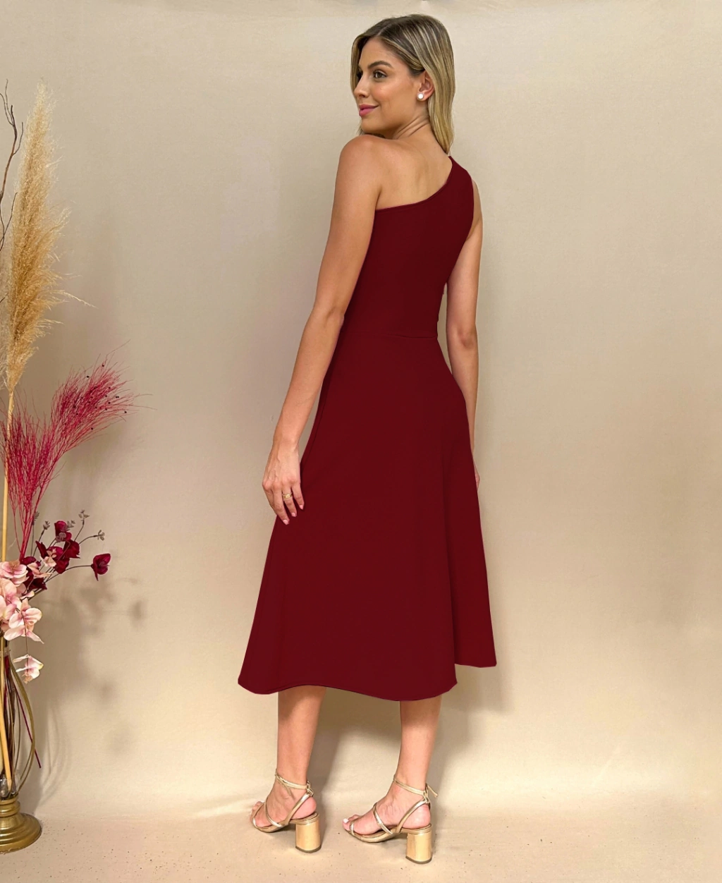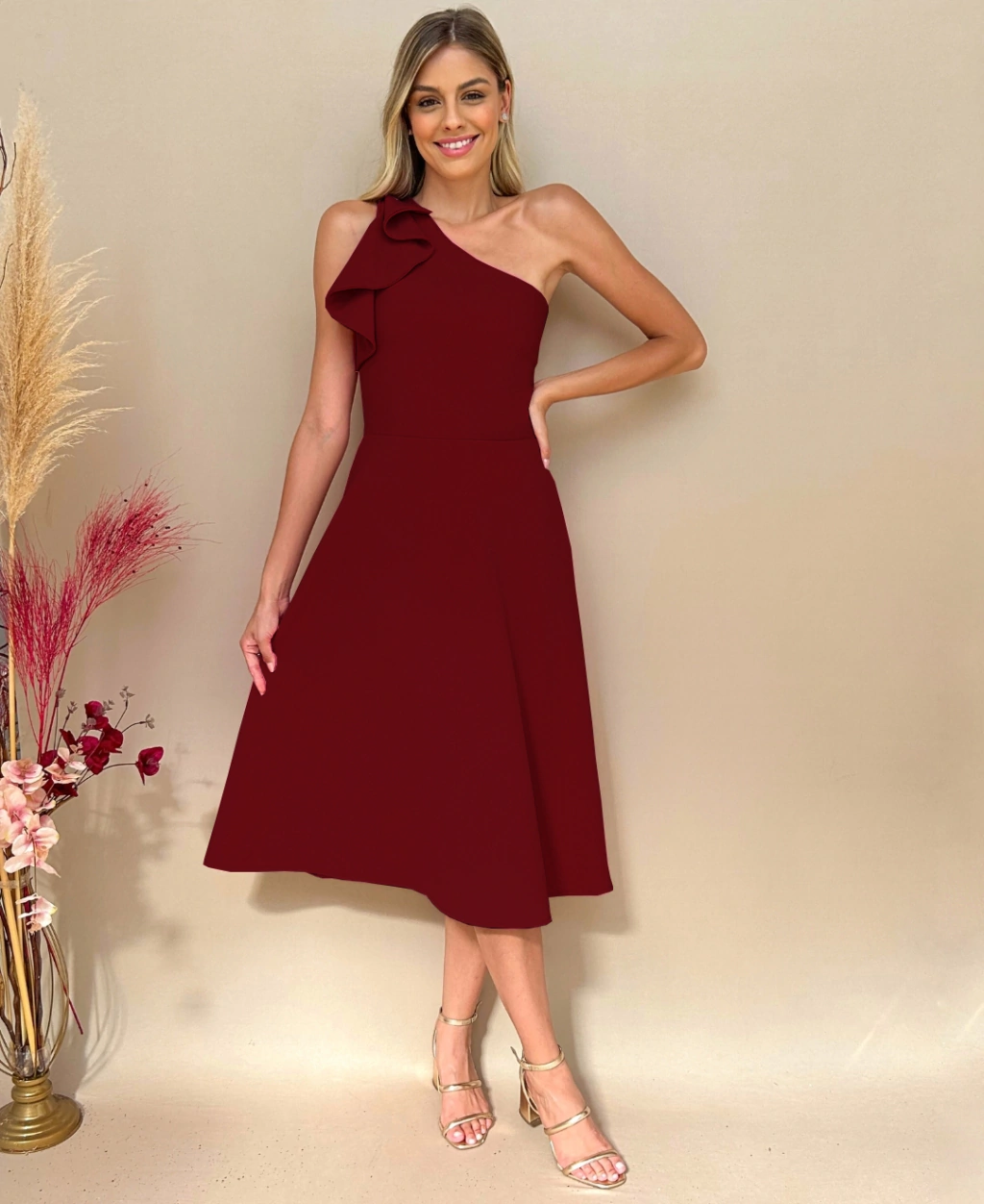 Este vestido combina sofisticação e charme, apresentando uma saia rodada que adiciona um toque de glamour a qualquer ocasião especial.