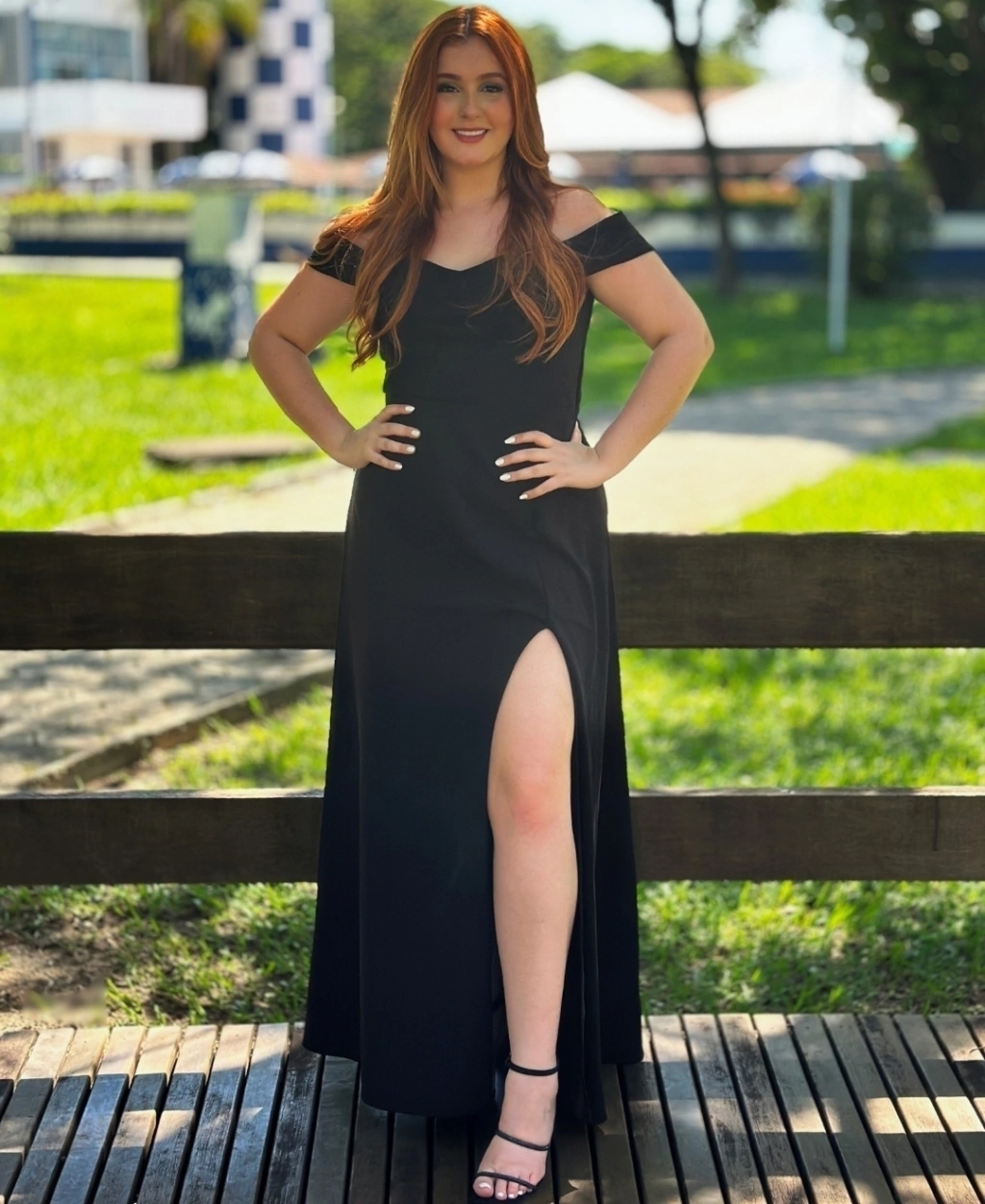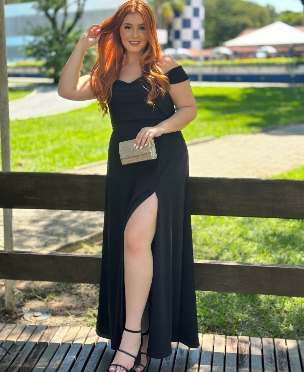 Fenda Lateral: A fenda lateral adiciona um toque sensual à peça, permitindo movimento fluido e revelando a quantidade certa de pele, conferindo uma dose extra de glamour.