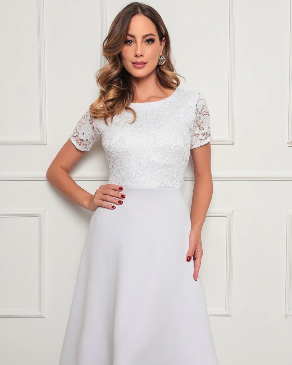 Tecido: Corpo confeccionado em renda poliamida (renda importada, 95 % poliamida 5% elastano. Tecido delicado que traz delicadeza e sofisticação à peça). E saia confeccionada em Malha Scuba Crepe, (malha importada grossa, não é transparente, não marca e não amassa. Tecido possui 5 % elastano que faz com que a peça se ajuste de maneira perfeita ao seu corpo. Indicado para moda festa.)