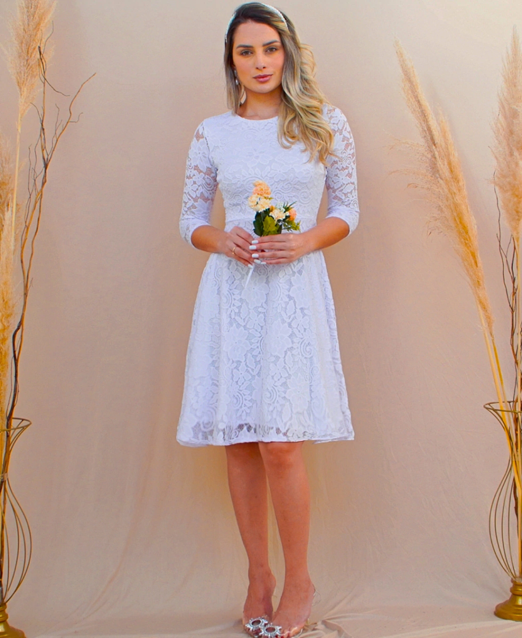 Mangas Elegantes: As meia mangas em renda adicionam um toque de sofisticação, proporcionando uma cobertura refinada para cerimônias .