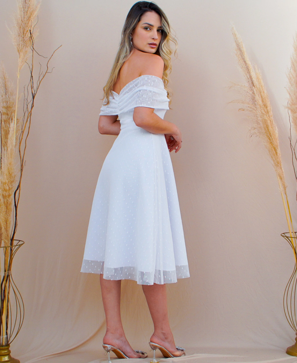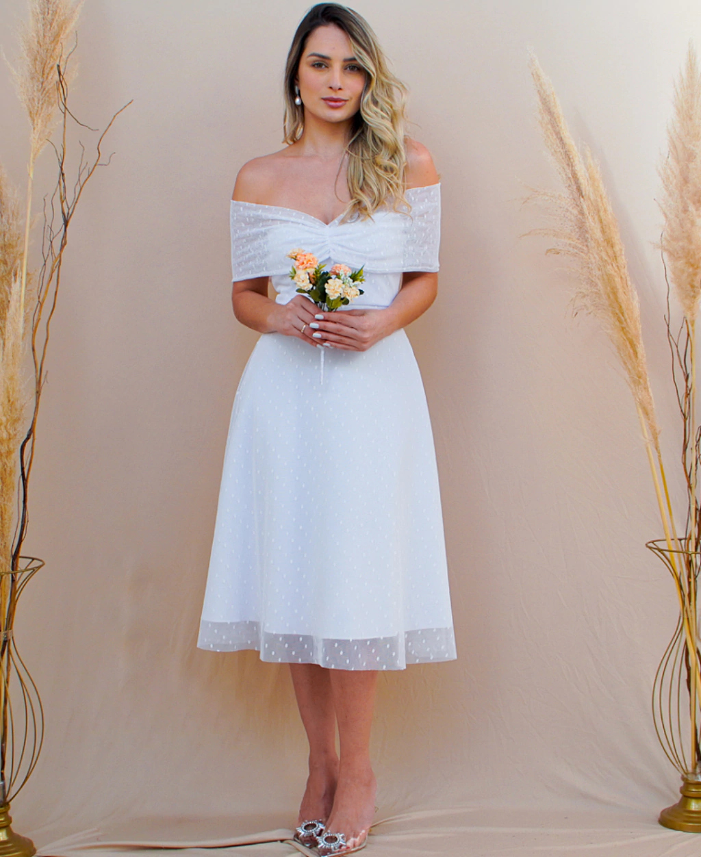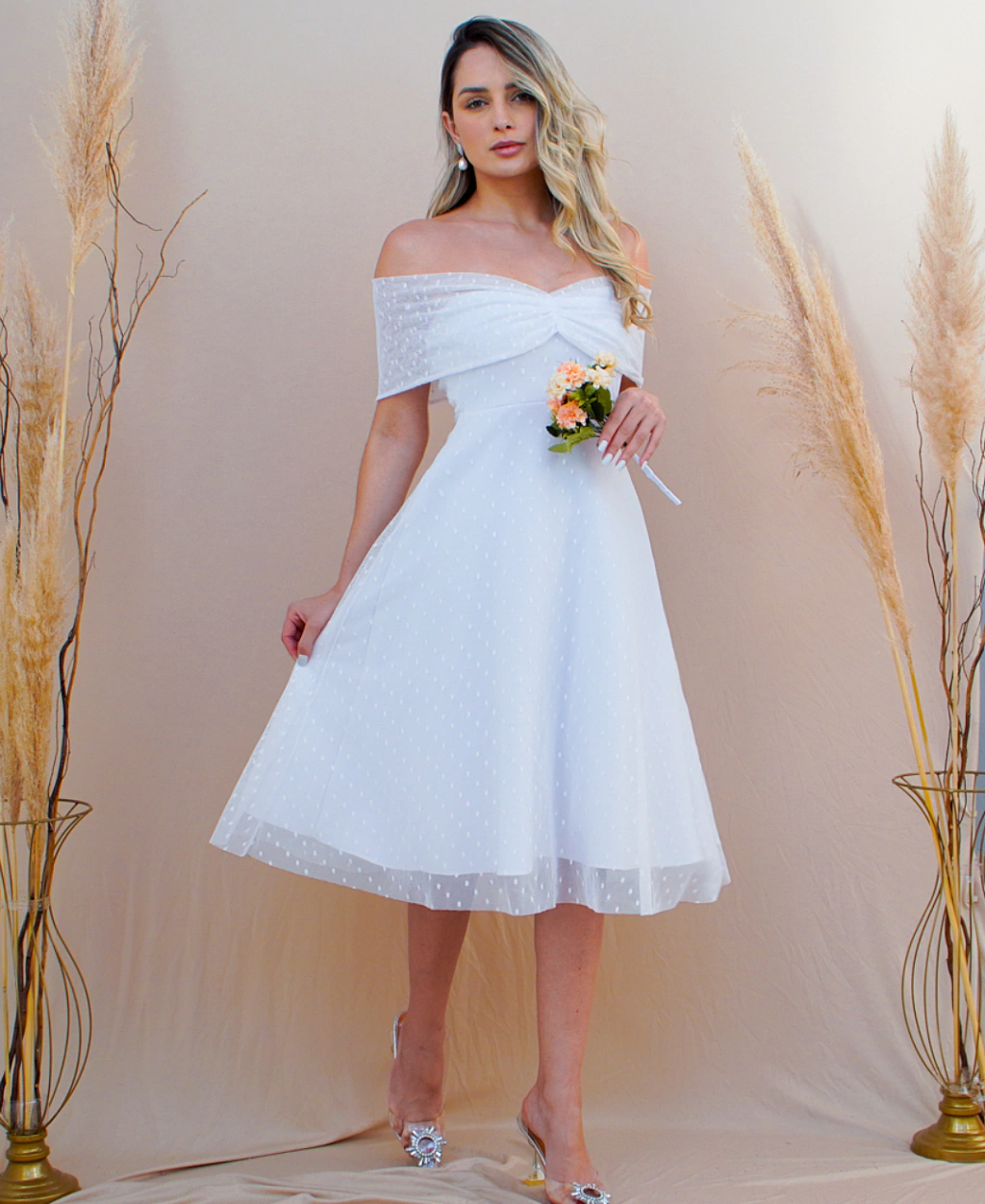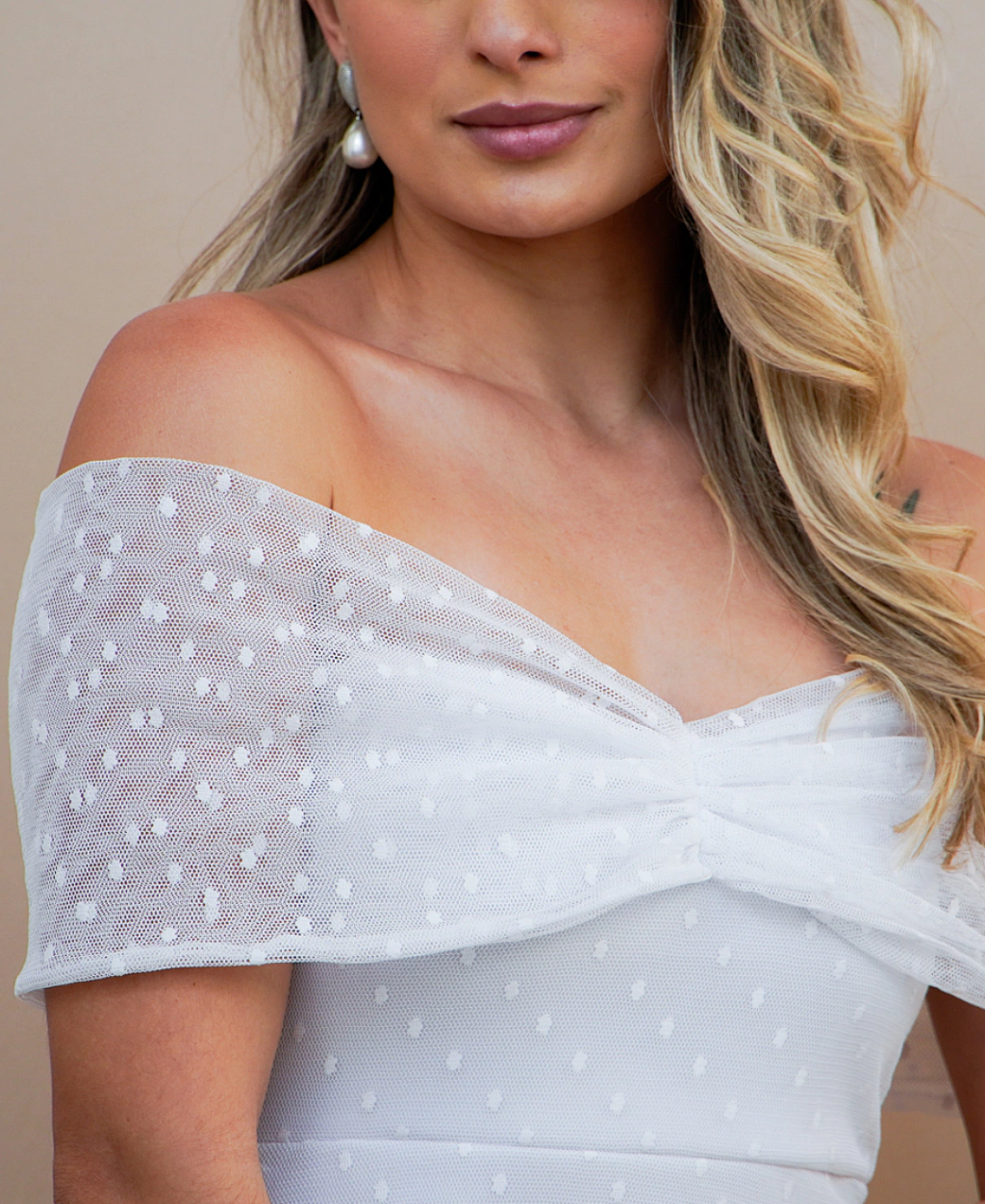 Design Encantador: O decote ombro a ombro adiciona uma dose de romantismo, destacando a beleza dos ombros e do colo de maneira elegante.
